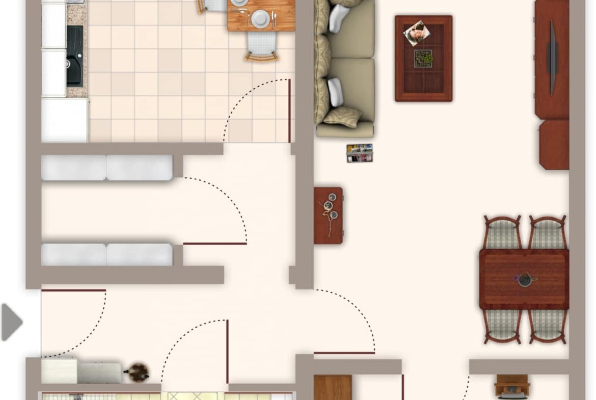 Der Wohnbereich besticht durch seine großzügige Gestaltung, die Ihnen vielfältige Einrichtungsmöglichkeiten ermöglicht. Große Fenster sorgen für eine helle und freundliche Atmosphäre, während die ebenerdige Dusche und die zusätzliche Badewanne im Badezimmer ein Höchstmaß an Komfort bieten.