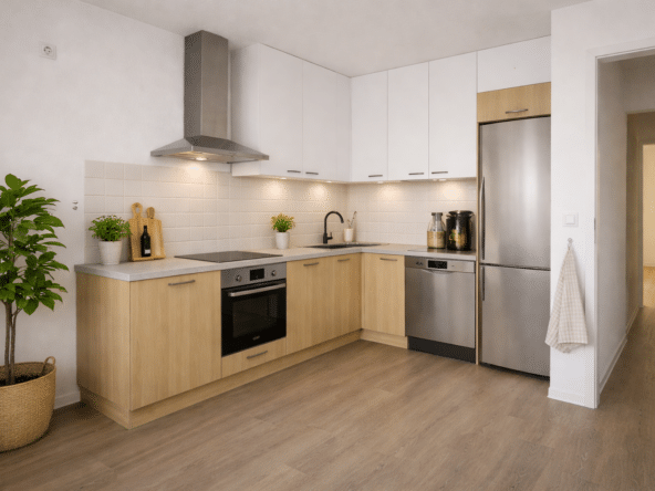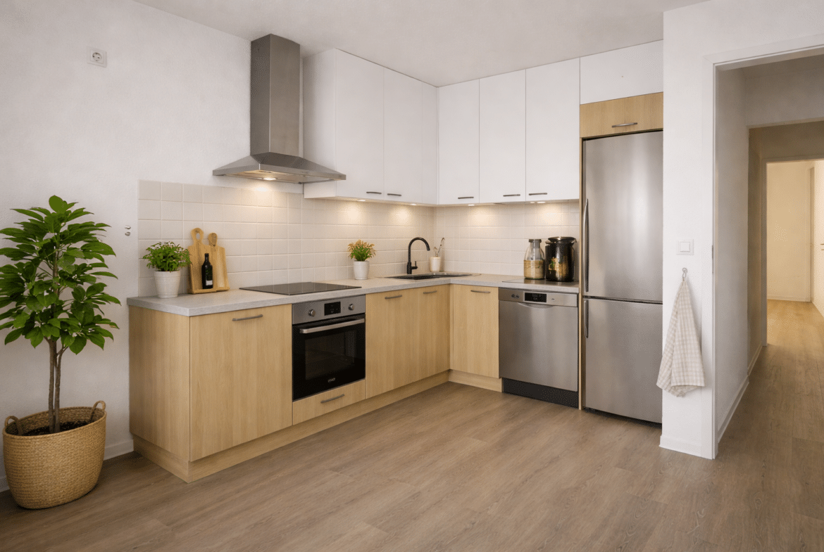Die helle Küche bietet ausreichend Platz für einen gemütlichen Essbereich und lädt dazu ein, gemeinsam Zeit zu verbringen. Auch die Wohn- und Schlafräume überzeugen durch praktische Grundrisse und gute Stellflächen, sodass sich individuelle Wohnideen problemlos umsetzen lassen.
