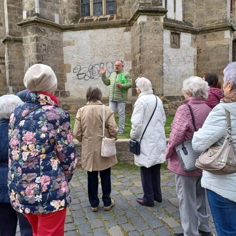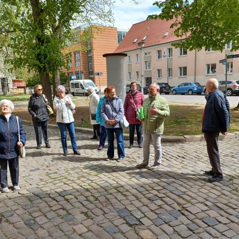 „Kultur trifft Kulinarik“ im April. Christian Schulze führte uns begleitet von vielen Erklärungen und Histörchen von der Gröperstaße über den Schwanenteich- Park, Poetengang zurück in Richtung Halberstädter Hof. Dort erwartete uns das Team bereits mit frischem Kuchen und Kaffee und Herr Schulze verwöhnte uns noch einer Lesung zum alten Halberstadt – auf alt Halberstädter Platt.