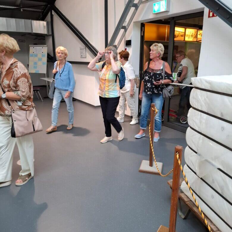 Weitere Ausflugsziele waren im Juni das Rosarium in Sangerhausen und auf der Heimfahrt der Kyffhäuser. Im Juli führte unser Weg uns an die Goitzsche bei Bitterfeld und ins Filmmuseum Bitterfeld – Wolfen. Neben viel Natur erfuhren wir auch vieles über die Lebens – und Arbeitsbedingungen derer, die in der DDR in der Filmfabrik tätig waren – auch das war für uns alle eine ganz besondere Erfahrung. Besonderer Höhepunkt war die Aussichtsplattform „Bitterfelder Bogen“ mit einem phantastischen Blick über die Goitzsche und große Teile Bitterfelds bis hin nach Leipzig.