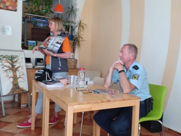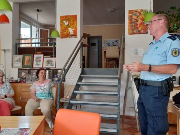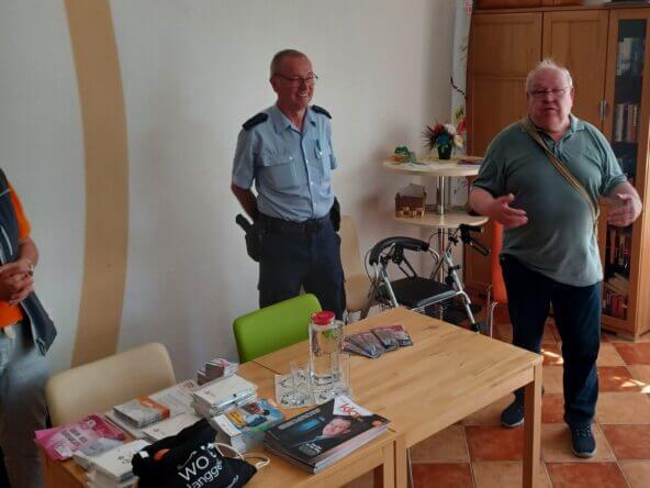 Herr Kühl von der Polizei, Frau Havemann von der NASA , der “Nahverkehrsservice Sachsen- Anhalt GmbH” und Herr Glandien von der Verkehrswacht besuchten uns am 21.06.2023. Frau Havemann informierte die Teilnehmenden zu den Änderungen im Nah – und Fernverkehr, die Vorteile des 49,00 € Tickets und anderes mehr. Vor betrügerischen Anrufern oder falschen Polizisten und Pflegehelfern warnte Herr Kühl. Viele neue Tricks der Ganoven wurden erklärt und Tipps zum eigenen Verhalten gegeben. Wir erfuhren, dass auch die Polizei Sachsen- Anhalt Nachwuchssorgen hat. Gleichzeitig werden die Aufgaben immer schwieriger und umfangreicher. Herrn Glandien von der Verkehrswacht hatte einen kleinen Rundkurs für Rollatoren aufgebaut. Unter fachkundiger Anleitung wurden hier bestimmte Handlungsweisen trainiert  und es gab so manchen Tipp. Insgesamt war es ein Nachmittag mit viel Abwechslung und Spaß.