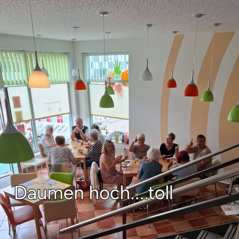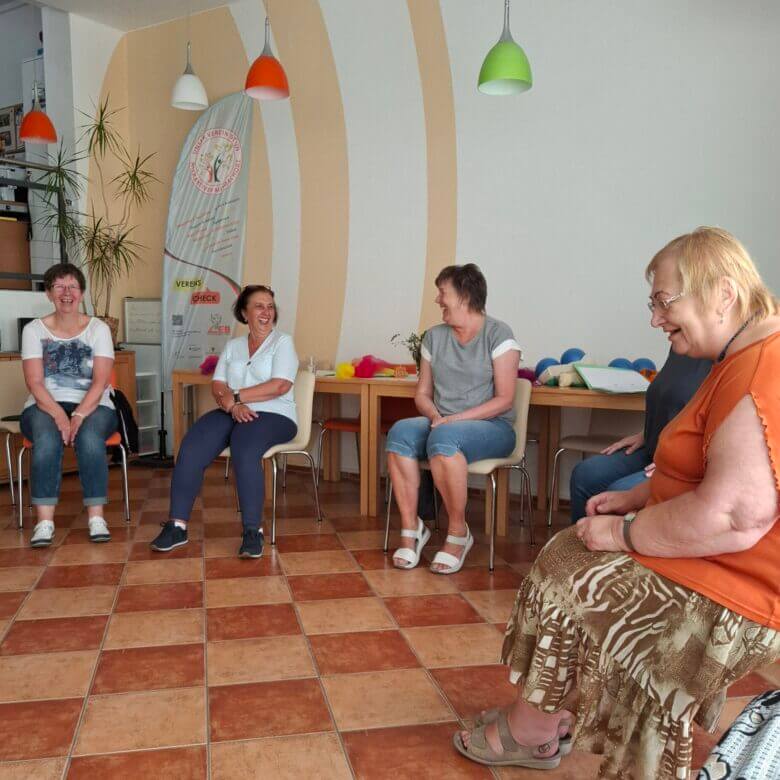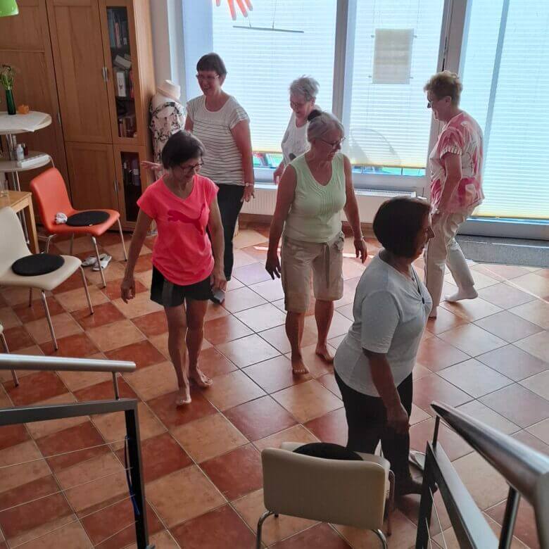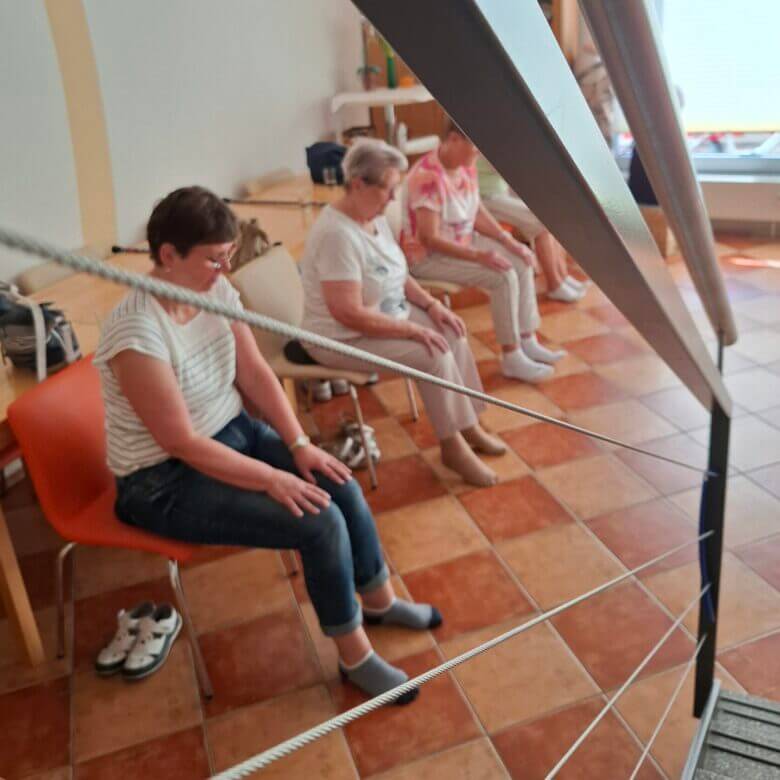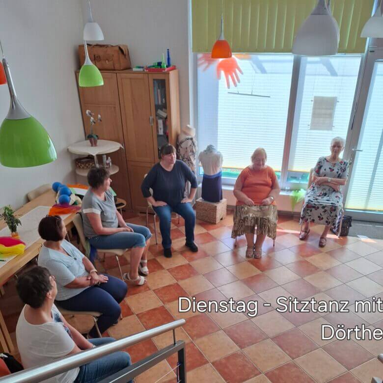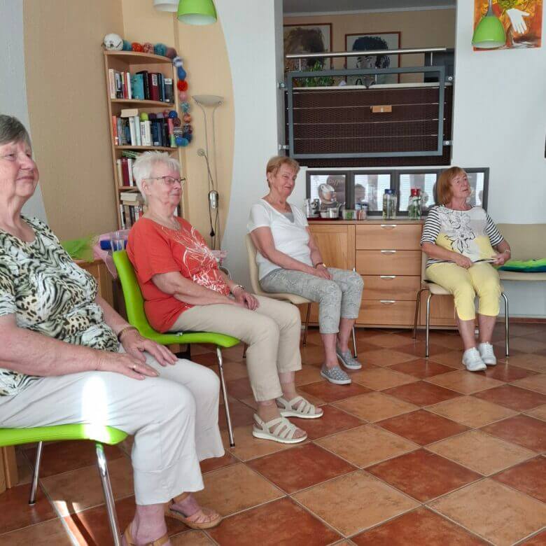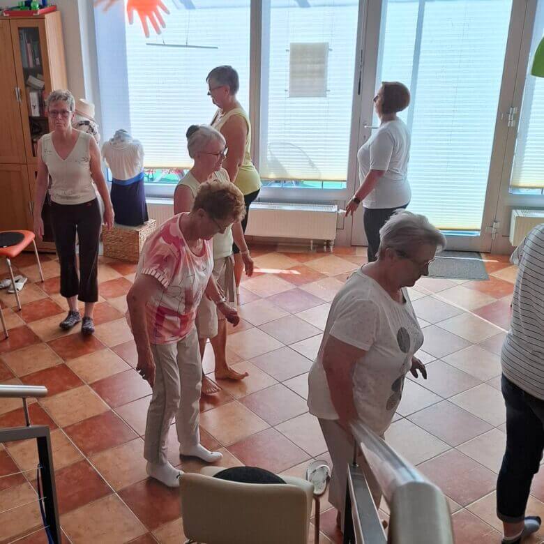 Der Dienstag begann sportlich mit Dörthe Schröder von der Ländlichen Erwachsenenbildung LEB. Am Vormittag konnten die Teilnehmenden sich bei verschiedenen Sitztänzen richtig auspowern und hatten dabei sichtlich viel Spaß. Warum Sitztanz? Nicht jedem ist es immer möglich sich sicher auf den Beinen zu halten und doch hat fast jeder Mensch Freude an Musik und Bewegung. Frau Schröder zeigte allen wie es möglich ist, auch im Sitzen im Rhythmus der verschiedenen Melodien aktiv zu sein, zu tanzen. Es war ein richtiges Ganzkörpertraining mit Gedächtnistraining, Koordinationstraining und körperlicher Beanspruchung.