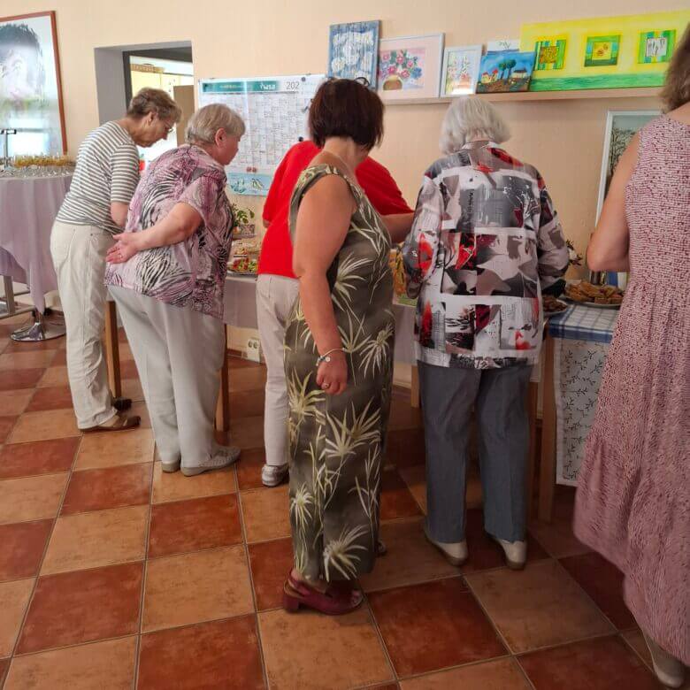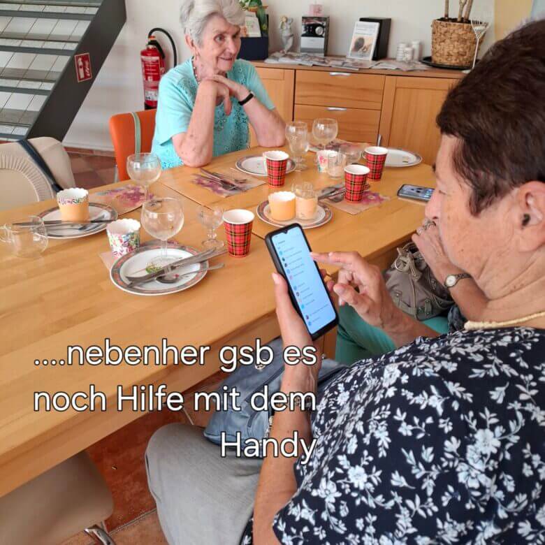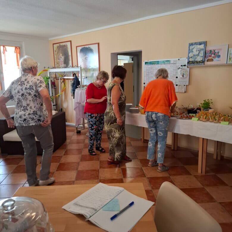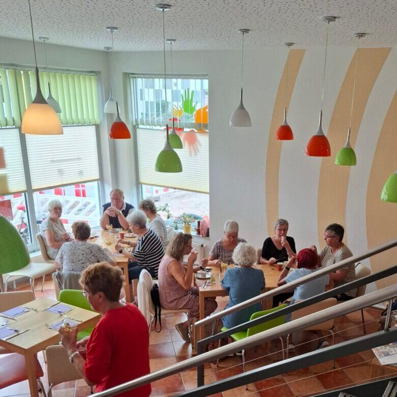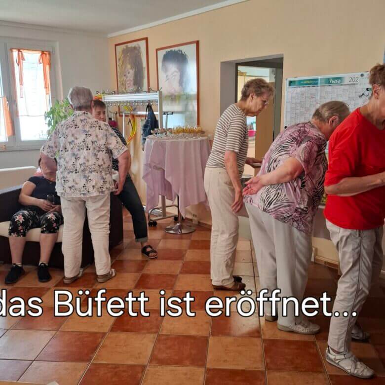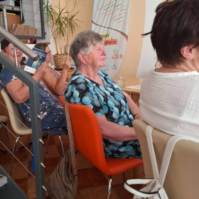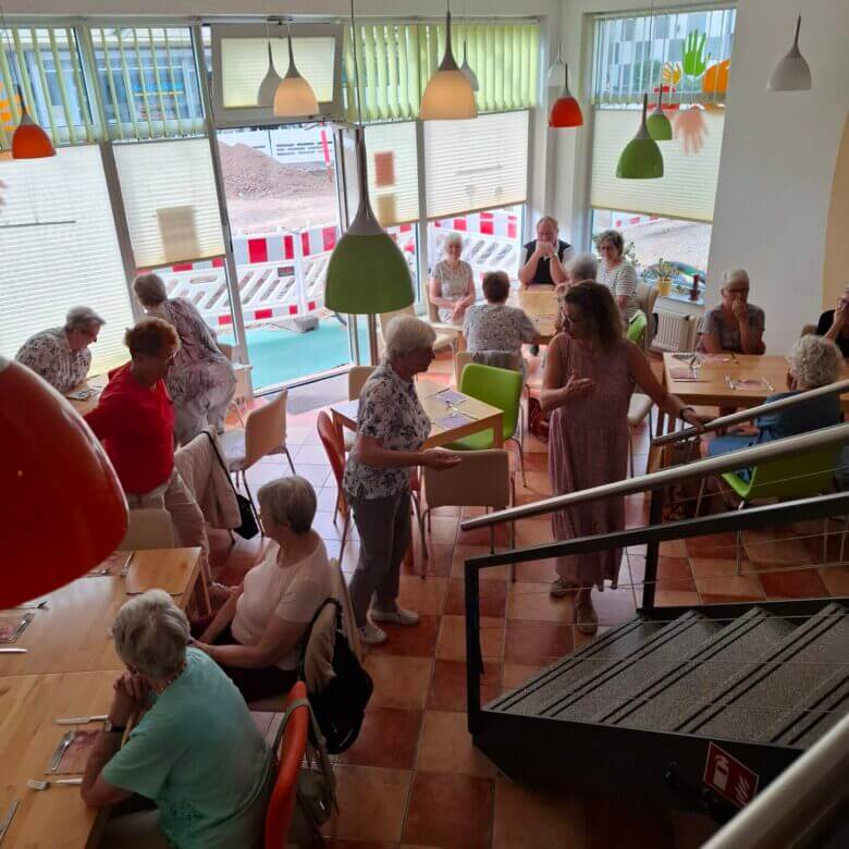 Der Dienstag begann sportlich mit Dörthe Schröder von der Ländlichen Erwachsenenbildung LEB. Am Vormittag konnten die Teilnehmenden sich bei verschiedenen Sitztänzen richtig auspowern und hatten dabei sichtlich viel Spaß. Warum Sitztanz? Nicht jedem ist es immer möglich sich sicher auf den Beinen zu halten und doch hat fast jeder Mensch Freude an Musik und Bewegung. Frau Schröder zeigte allen wie es möglich ist, auch im Sitzen im Rhythmus der verschiedenen Melodien aktiv zu sein, zu tanzen. Es war ein richtiges Ganzkörpertraining mit Gedächtnistraining, Koordinationstraining und körperlicher Beanspruchung.